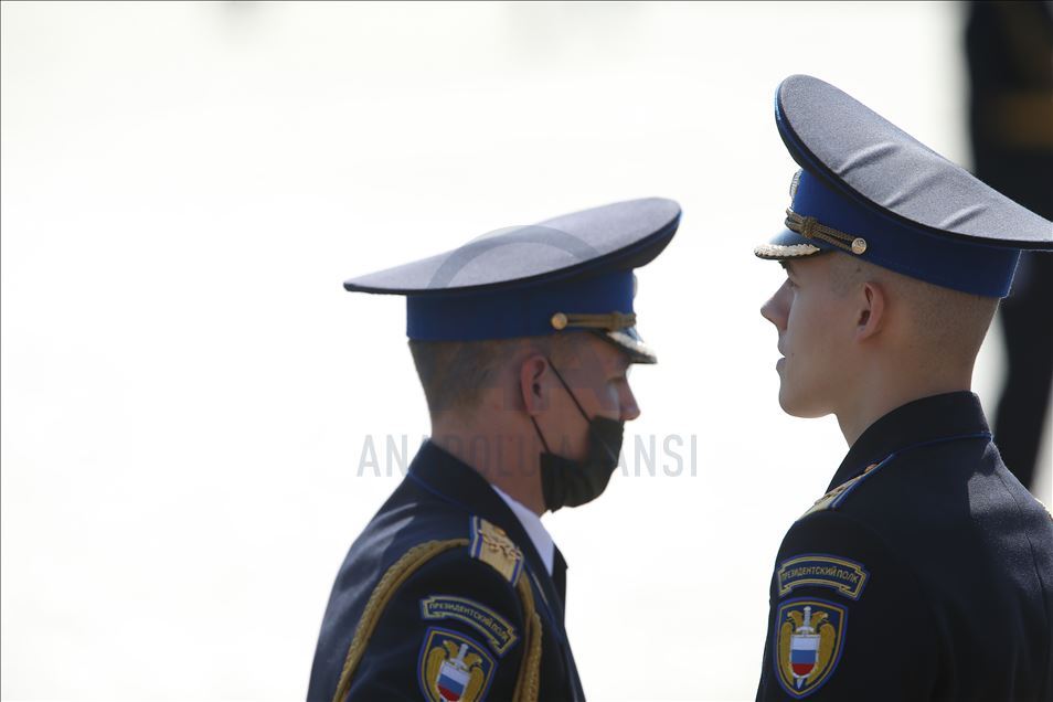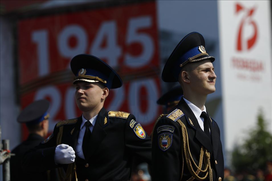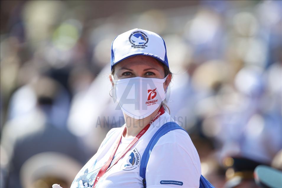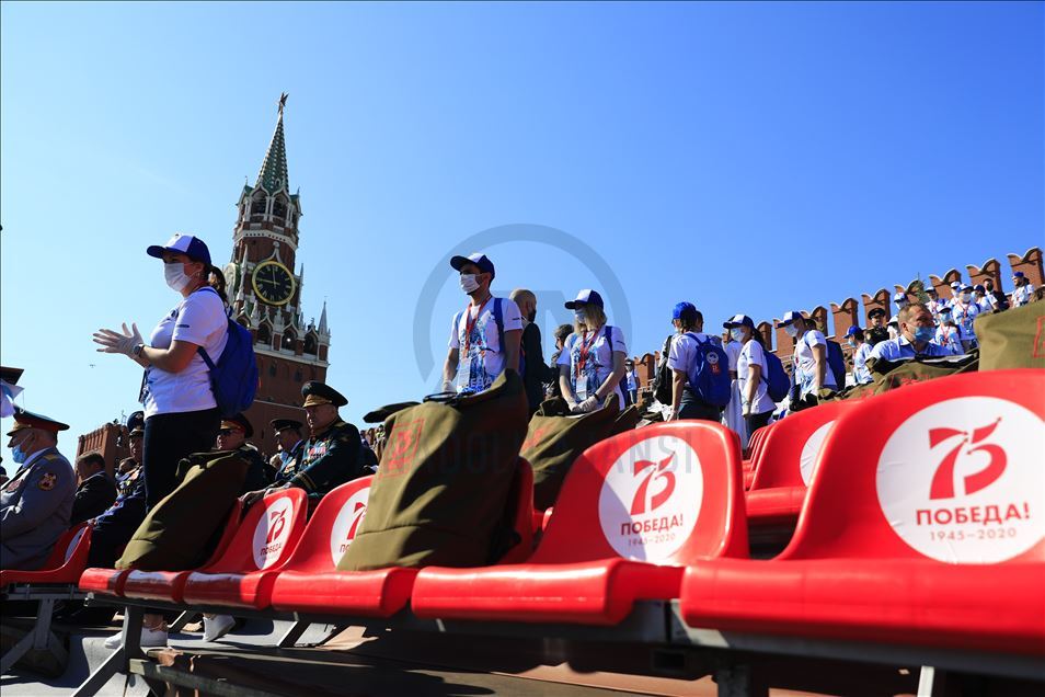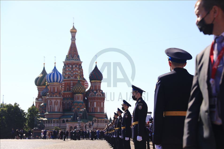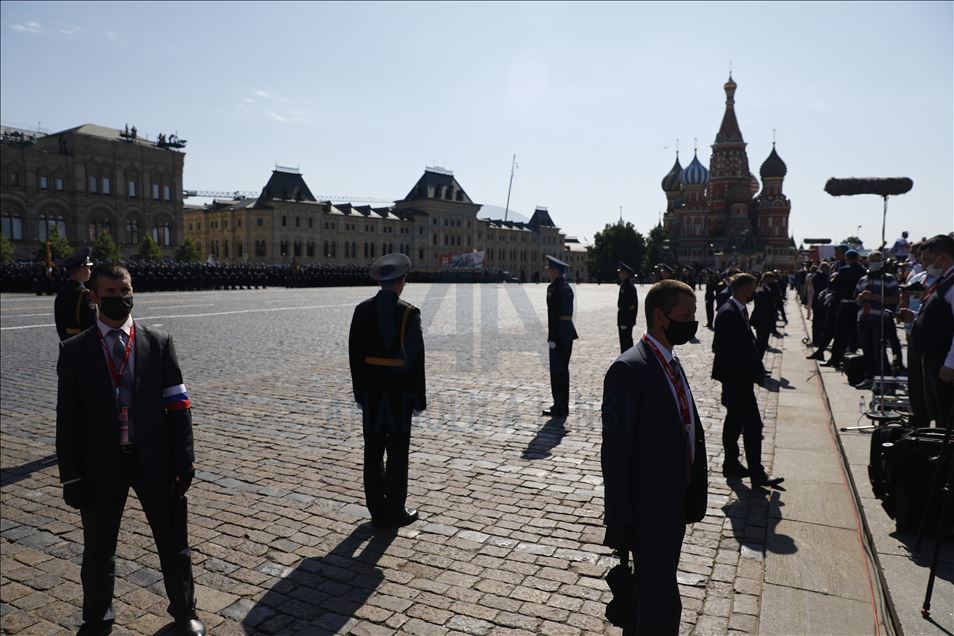 Başkent Moskova'da Kovid 19 salgını nedeniyle 9 Mayıs’ta ertelenen Sovyetler Birliği'nin 2. Dünya Savaşı'nda Nazi Almanya'sına karşı zafer kazanmasının 75. yılı askeri geçit törenleri, Kızıl Meydanda yapıldı. Törende misafirler, gazeteciler ve görevliler fiziki mesafe ve maske kurallarına göre hareket etti. ( Sefa Karacan - Anadolu Ajansı )