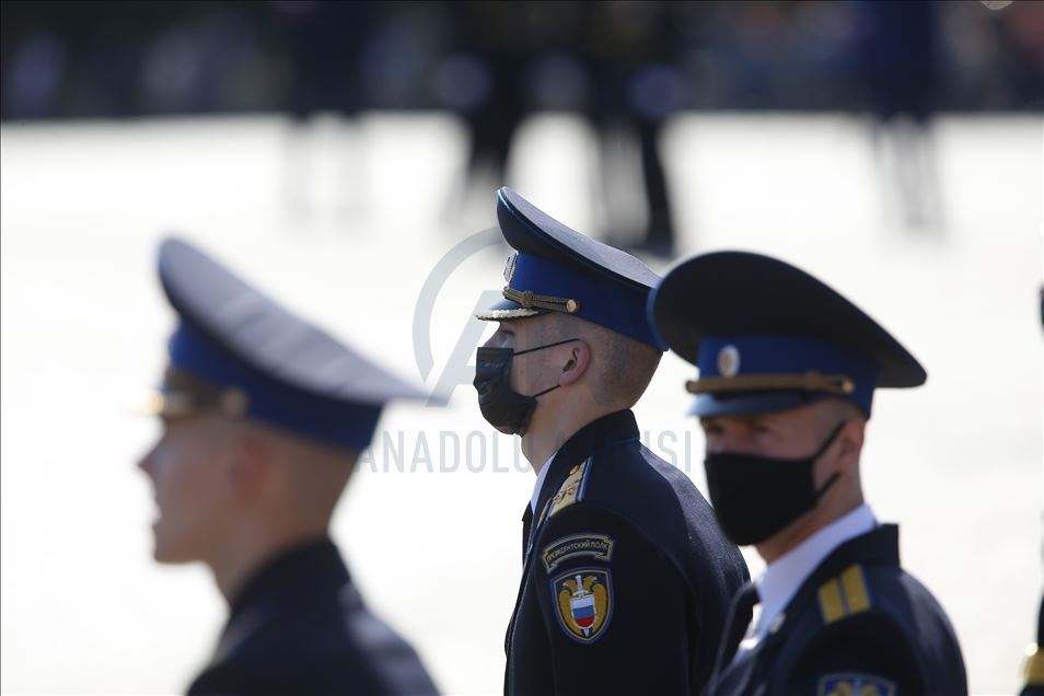 Daha önce 9 Mayıs olarak planlanan ancak yeni tip koronavirüs (Kovid-19) nedeniyle ertelenen etkinlikte yaklaşık 14 bin asker yer aldı. Törende, Kovid-19 nedeniyle sıkı tedbirler alındı.