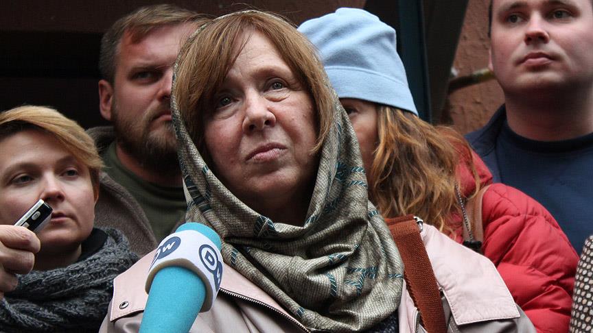 Aleksiyeviç, Belarus'un başkenti Minsk'te gazetecilere yaptığı açıklamada, Rusya'nın Ukrayna'nın doğusuna müdahalesini "istila" olarak gördüğünü söyledi.