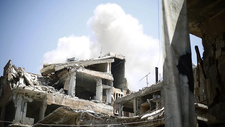 AA muhabirinin sivil savunma ve hastane yetkililerinden aldığı bilgiye göre, Rus jetleri Deyruz Zor kentinin doğusundaki Kuriye ilçesinde İman Camisi ile sivil yerleşim yerine ''vakum bombasıyla'' saldırdı.