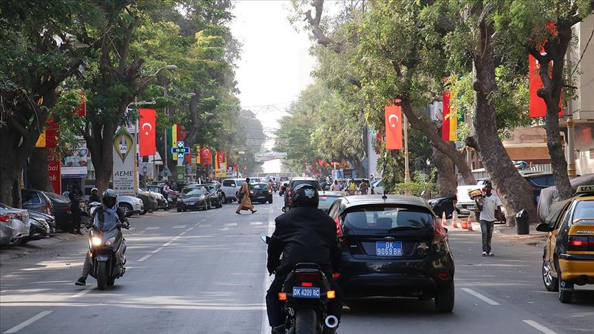 Cumhurbaşkanı Recep Tayyip Erdogan'ın bugün ziyaret edeceği Senegal'in başkenti Dakar'da caddeler, Türk ve Senegal bayraklarıyla süslendi.