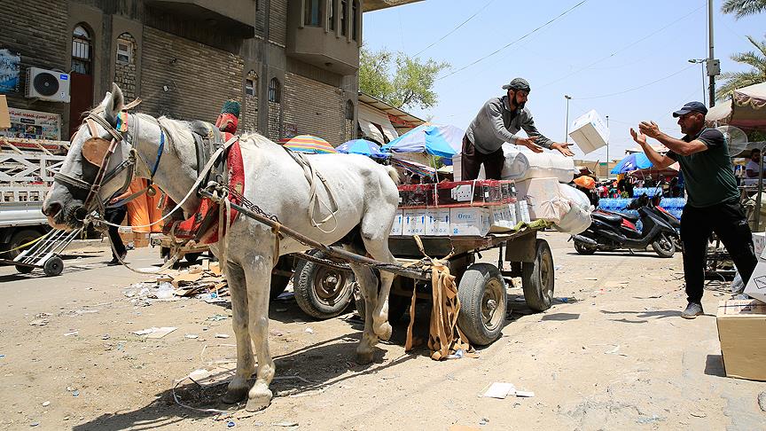 Irak'ın başkenti Bağdat'ta, güvenlik gerekçesiyle at arabalarıyla şehir içi ve şehirler arası taşımacılık hâla varlığını sürdürüyor.