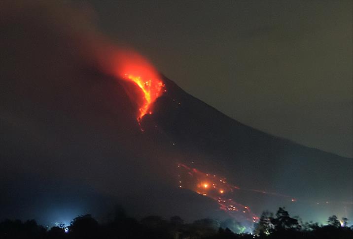 Endonezya Ulusal Afet Yönetim Ajansı yetkilileri, yanardağ çevresinde kurulan kontrol noktalarında patlama riskleri ve değerlerini 24 saat kontrol ediyor.