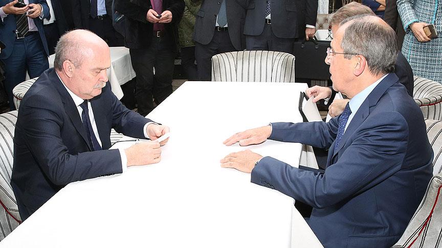 Sinirlioğlu ile Lavrov, toplantının gerçekleştirdiği Hotel Imperial'da bir araya geldi.