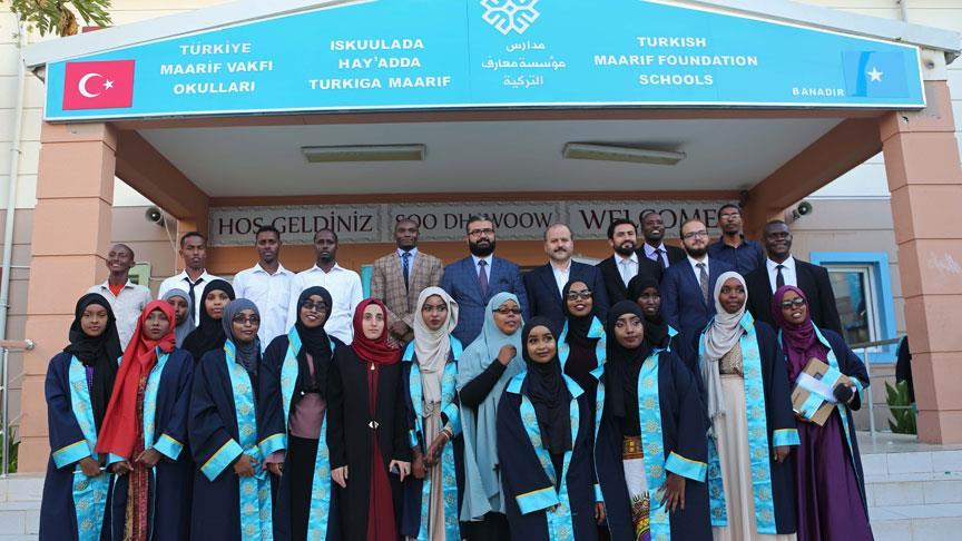 Somali'nin başkenti Mogadişu'da Türkiye Maarif Vakfı (TMV) bünyesinde faaliyet gösteren okullar, ilk mezunlarını verdi.