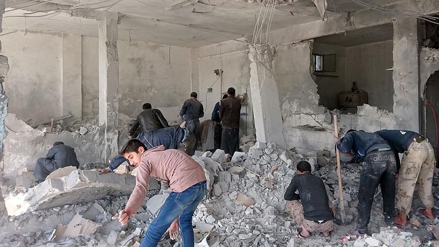 Açıklamada, çoğu kadın ve çocuk, yaralıların da olduğu saldırıyı, "Rus uçaklarının vakum bombası kullanarak" düzenlediği ifade edildi.