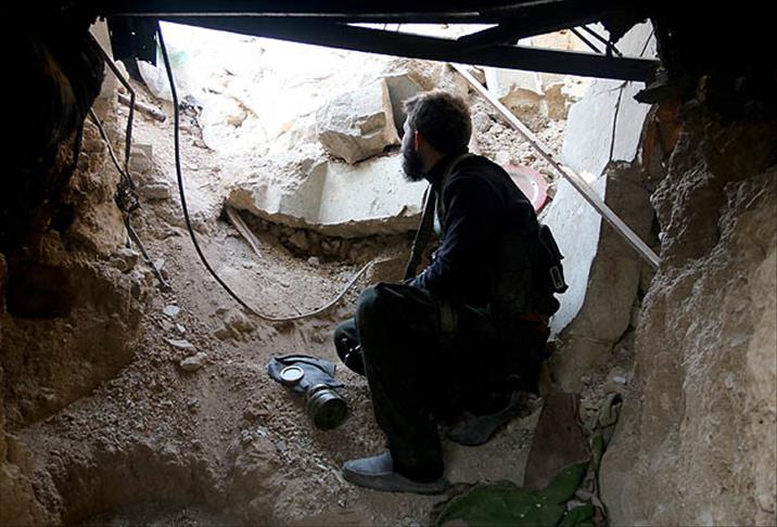 Suriye'de başkent Şam'ın Cobar bölgesindeki muhalifler, kazdıkları tünel ve hendeklerle rejimin kara ve hava saldırılarına direnmeye çalışıyor.