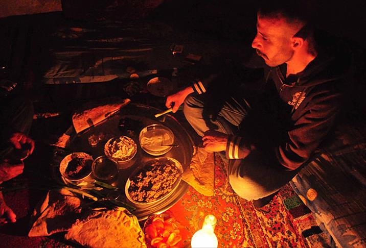 Akşam saatlerinde evlerine çekilen Suriyeliler, lüks lambalarının ışığında sofraya oturuyor. Karanlıkta ibadetlerini aksatmayan Suriyeliler, namazın ardından ülkeleri için dua ediyor.