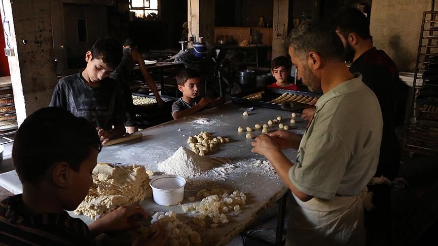 Bölgedeki tatlıcılar da bayramın yaklaşmasıyla siparişlerini yetiştirmek için gece gündüz çalışıyor. Halk, Esed güçlerinin Doğu Guta'ya yönelik saldırılarını durdurması sebebiyle genellikle alışverişlerini iftardan sonra yapıyor.
