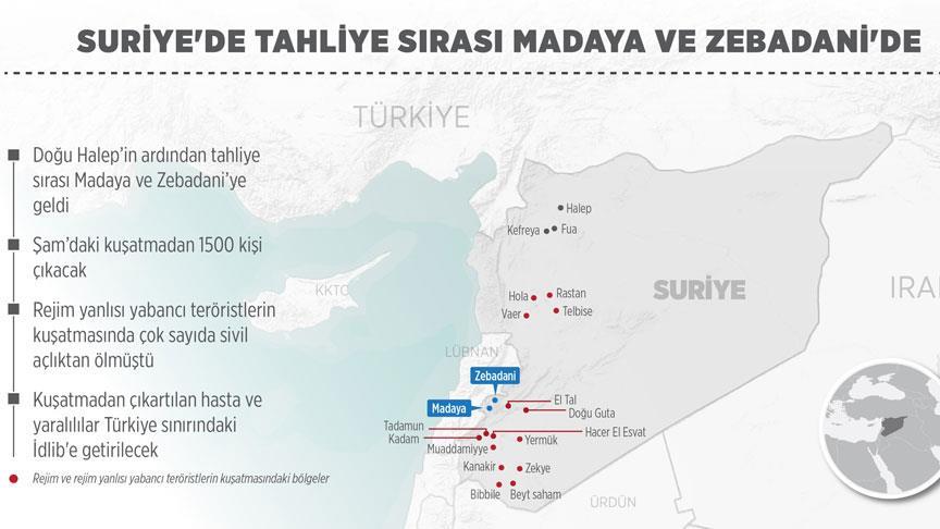 Türkiye ve Rusya arasında 18 Aralık'ta varılan mutabakata göre, Şam'da rejim ve rejim yanlısı milislerin kuşatmasındaki Zebadani ve Madaya bölgelerindeki tahliyelerin doğu Halep'in tamamlanmasının hemen ardından başlaması gerekiyor.