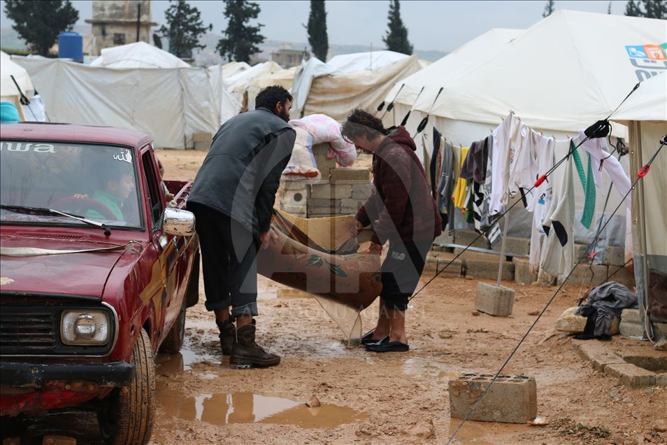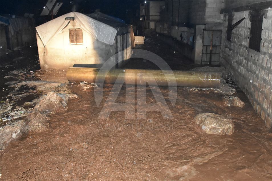 Atme kamplar bölgesindeki Beyaz Eller kampında yaşayan Latamneli Ebu Rabi Kusa, AA muhabirine yaptığı açıklamada, sağanak nedeniyle suların çadırlara dolduğunu ve çadırların kullanılamaz hale geldiğini söyledi.