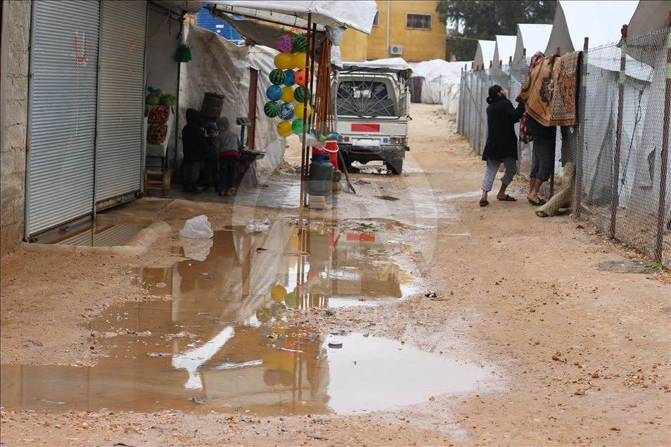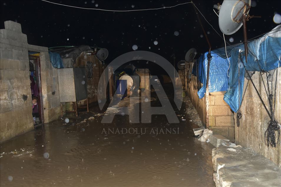 İdib'in kuzeyinde sınır hattındaki Hırbıt El Cuz, El Zuf, Derküş, Sermada, Kefer Lusin ve Atme bölgelerindeki yüzlerce çadır kent, şiddetli yağıştan olumsuz etkilendi.