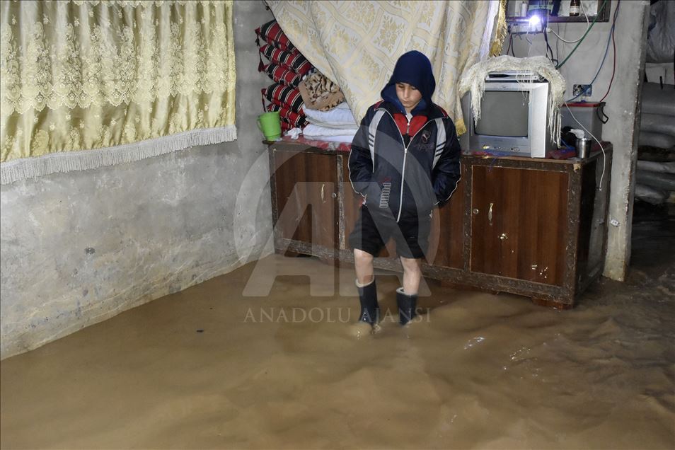 Suriye'nin kuzeyindeki Fırat Kalkanı bölgesinde, aralıksız yağış nedeniyle yerinden edilmiş sivillerin sığındığı kamplar ve bir çok yerleşim merkezinde taşkınlar oluştu. Özellikle Bab bölgesinin etkilendiği yağışlar dolayısıyla bazı ev, dükkan ve sığınmacı çadırlarını su bastı. Sünger, battaniye, gıda kolisi ve brandalara ihtiyaç duyan siviller, eşyalarınının ıslanmaması için onları kuru yerlere koydu. ( Mustafa Bathiş - Anadolu Ajansı )