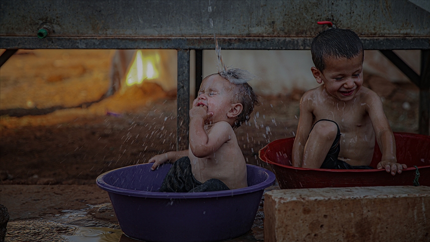 Esed rejimi güçlerinin saldırıları sonucu yüz binlerce sivilin yerinden edildiği İdlib'de, gün içinde 40 derecenin üzerine çıkan sıcaklık, çoğu kadın ve çocukların yaşadığı çadırlarda hayatı durma noktasına getirdi.