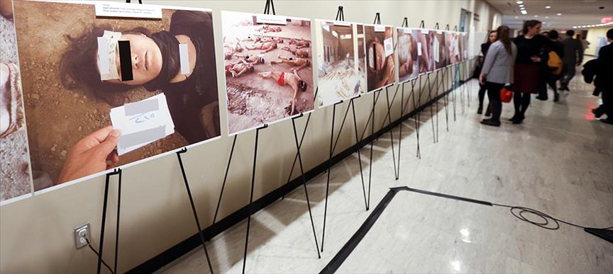 Suriye'de rejim tarafından işkence ve insanlık dışı yöntemlerle öldürüldüğü belirlenen 11 bin kişiye ait fotoğraflardan bazılarının yer aldığı sergi BM'nin New York'taki Genel Merkezi'nde açıldı.