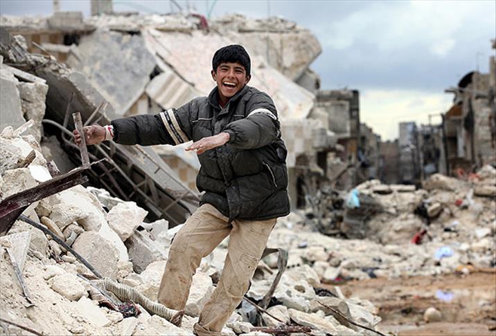 "Halep'teki bazı bölgelerde halk, rejimin keskin nişancılarının görüş açısına giren sokakları hasırlarla kapattı. Böylelikle, ulaşıma kapanan sokaklar, çocuklar için adeta oyun parkı haline geldi. Bu sokaklarda bazı çocuklar top oynarken, bazıları da yıkıntılar içerisinde savaş oyunu oynuyor."