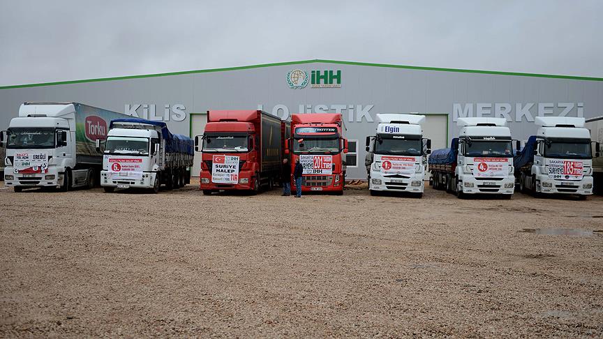 İnsan Hak ve Hürriyetleri (İHH) İnsani Yardım Vakfınca başlatılan "Halep'e Yol Açın" kampanyası kapsamında temin edilen 27 tır yardım malzemesi, Suriye'ye gönderildi.