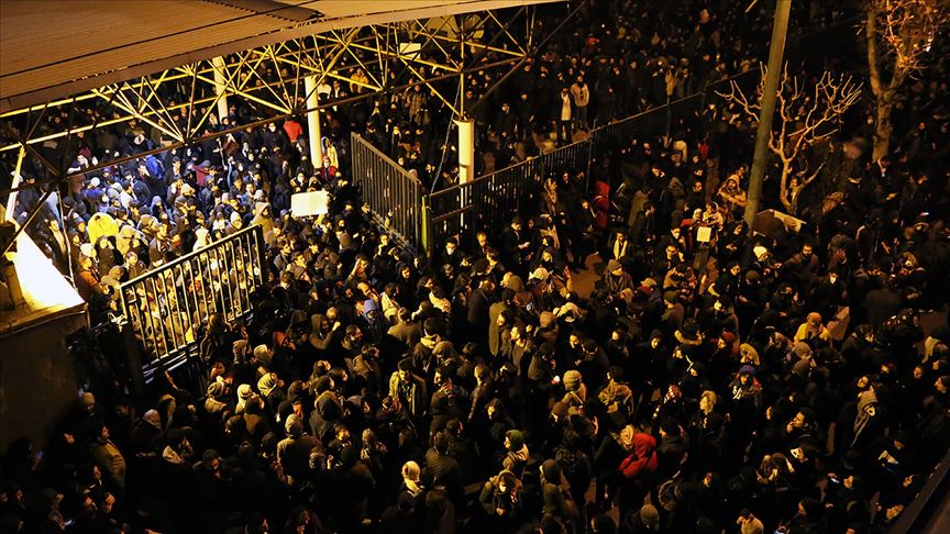 İran’ın başkenti Tahran’da düşürülen uçakta hayatını kaybedenler için düzenlenen anma, rejim karşıtı gösteriye dönüştü. Başkentteki Emir Kebir Üniversitesi’nin önünde toplanan göstericiler, rejim karşıtı sloganlar atıldı. ( Fatemeh Bahrami - Anadolu Ajansı )
