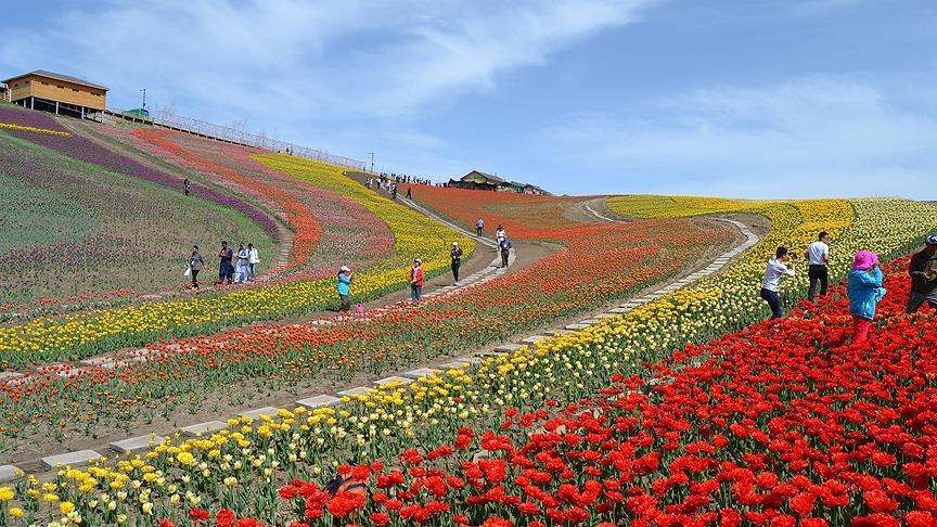 Çin'in Sincan Uygur Özerk Bölgesi’ne bağlı Tanrı Dağı eteklerindeki Qitai'de yetiştirilen rengarenk laleleri görmek için dünyanın dört bir yanından binlerce ziyaretçi bölgeye geliyor.