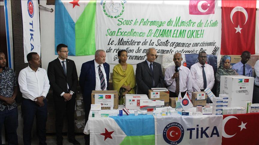 Cibuti Sağlık Bakanlığı İlaç ve Ecza Deposunda düzenlenen teslim törenine Cibuti Sağlık Bakanı Genel Sekreteri, İlaç ve Ecza Müdürlüğü yetkilileri, Türkiye'nin Cibuti Büyükelçisi Sadi Altınok ile TİKA Cibuti Koordinatörlüğü yetkilileri katıldı.