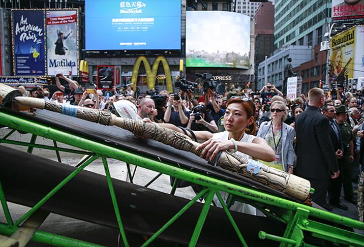 New York'taki Times Meydanı'nda düzenlenen etkinlikte, ele geçirilen 1 ton fil dişi ve ürünleri imha edildi.