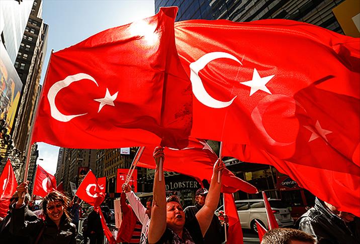 Genç Türkler (Young Turks) Derneği'nin organize ettiği ve Azeri toplumundan temsilcilerin de katıldığı gösteride, 100'ün üzerinde Türk, New York'un ünlü Times Meydanı'nda buluştu.