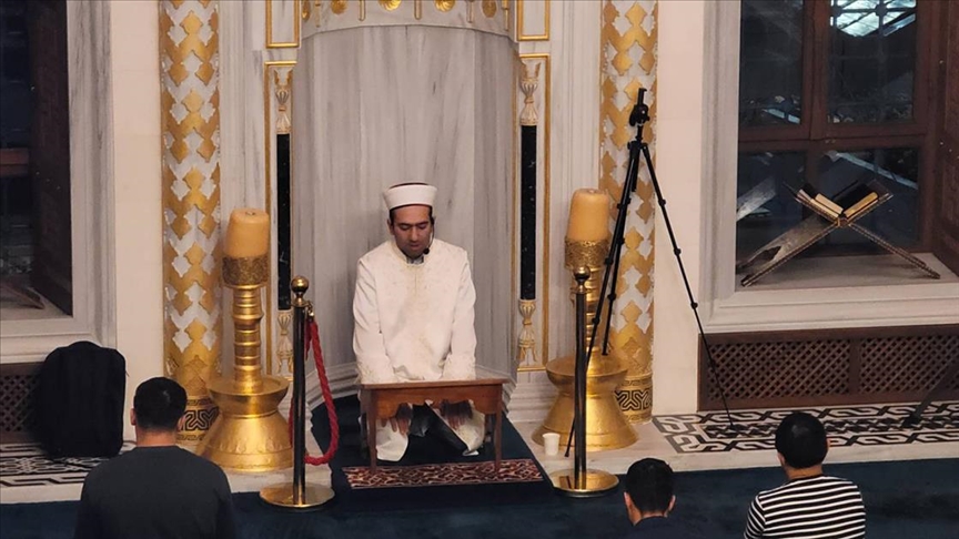 Diyanet İşleri Başkanlığına bağlı Tokyo Camisi'nin İmam Hatibi Kurra Hafız Muhammet Rıfat Çınar, yatsı namazı sonrası Mevlit Kandili dolayısıyla Kur'an-ı Kerim okudu.