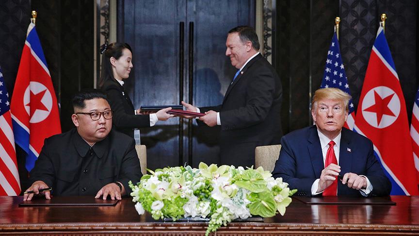 ABD Başkanı Donald Trump ile Kuzey Kore lideri Kim Jong-un tarafından Singapur'da yapılan tarihi zirvenin ardından imzalanan ortak açıklamada, Kore Yarımadasında on yıllardır süren gerilimi dindirmeyi amaçlayan çok sayıda taahhüt yer aldı.