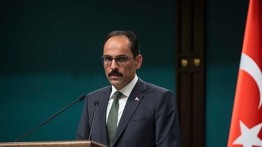Kalın, Birleşmiş Milletler (BM) 72. Genel Kurulu toplantılarına katılmak üzere ABD'nin New York kentinde bulunan Cumhurbaşkanı Erdoğan'ın, PBS kanalında yayımlanan "News Hour" programının yapımcısı Judy Woodruff'a verdiği mülakata ilişkin Twitter hesabından açıklamada bulundu.