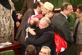 Tunus'ta Ulusal Kurucu Meclisi üyeleri, yeni anayasa taslağının tümü üzerinden yapılan son oylamada gerekli olan 3'te 2 çoğunluğu sağlayarak, 12'ye karşı 200 oyla yeni anayasa taslağını onaylamıştı.