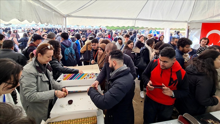 Geleneksel Türk kıyafetleri giyen YEE öğrencileriyle fotoğraf çektiren ziyaretçilere Türk mutfağına ait yiyecek ve tatlılar ikram edildi.