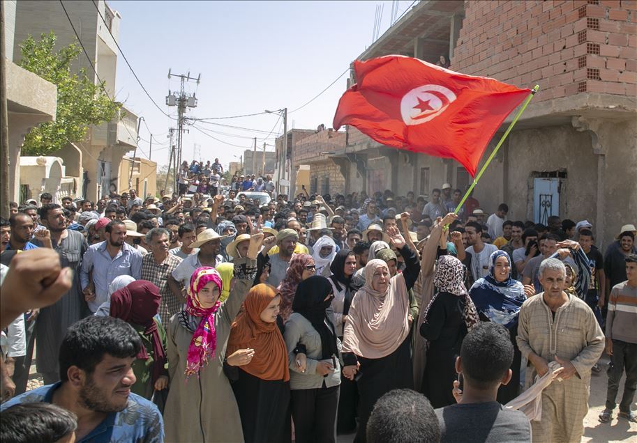 Tunus'un işsizlik protestolarına sahne olan Tatavin ilinde, Libya sınırında bir gencin kendi aracı içindeyken kurşunlanarak öldürülmesi bugün de protesto edildi. Tatavin iline bağlı Libya sınırı yakınındaki Ramada kentinde toplanan yaklaşık 300 kişilik grup, gencin öldürülmesine tepki gösterdi. Göstericiler, olayın soruşturulması ve suçluların yargılanmasını istedi. ( Yassine Gaidi - Anadolu Ajansı )