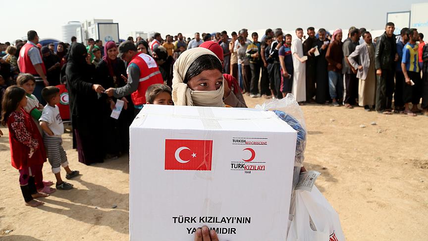 Yılmaz, "Musul'u DEAŞ'tan kurtarma operasyonu sırasında evlerini terk edip sığınmacı kamplarına yerleşen 300 aileye 1,5 ton makarna, 300 kişilik giyim malzemesi, 150 battaniye ve 150 uyku tulumu dağıttık." dedi.