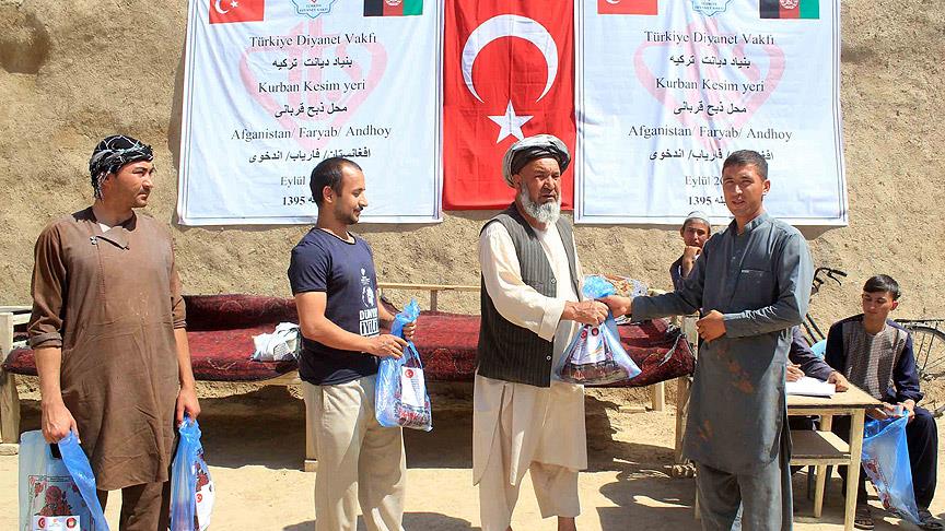 Yetkililer, Türkiye Diyanet Vakfı vekalet yoluyla kurban kesimi organizasyonu kapsamında Faryab vilayetinde yaklaşık 2 bin yoksul aileye kurban eti dağıtıldığını bildirdi.