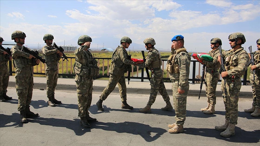 Türk askerleri, Nahçıvan Özerk Cumhuriyeti'nin Sederek sınır kapısında, Araz Nehri üzerindeki Ümit Köprüsü'nde törenle karşılandı.