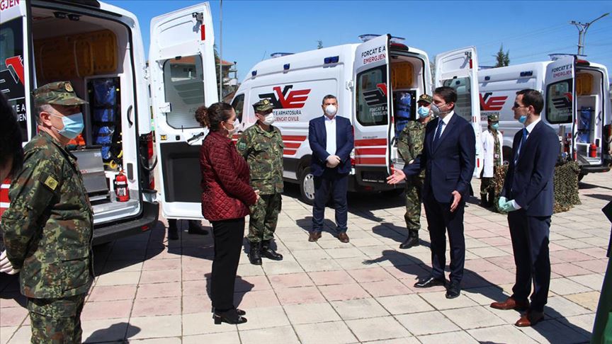 Xhaçka, "Kendisi de salgınla mücadele etmesine rağmen bizim bu zor günlerde yanımızda bulunan dostumuz ve müttefikimiz Türkiye'ye Arnavutluk hükümeti adına iki kez şükranlarımı sunmak istiyorum. Bugün itibarıyla bu ambulanslar, sivil acil durumlar çerçevesinde Silahlı Kuvvetlerin operasyonel bir parçası olacak ancak ihtiyaç duyulduğu takdirde kaza veya diğer tıbbi acil durumlarda acil ihtiyaçları karşılamak üzere Travma Hastanesine ilişkilendirilecektir." ifadesini kullandı.