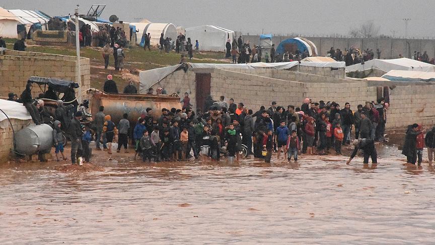 İdlib ve Lazkiye kırsalında önceki gün başlayan ve sele yol açan sağanak nedeniyle 11 sığınmacı kampı sular altında kaldı. "Suriye Müdahale Koordinatörleri" isimli yerel sivil toplum kuruluşu yetkililerinden alınan bilgiye göre, devam eden yağışlar yüzünden on binlerce sığınmacının çadırı çamur birikintilerinin arasında kalırken selden zarar gören 25 bin sivil göç etti. Su baskınlarında can kaybı yaşanmazken çok sayıda küçükbaş hayvan telef oldu.