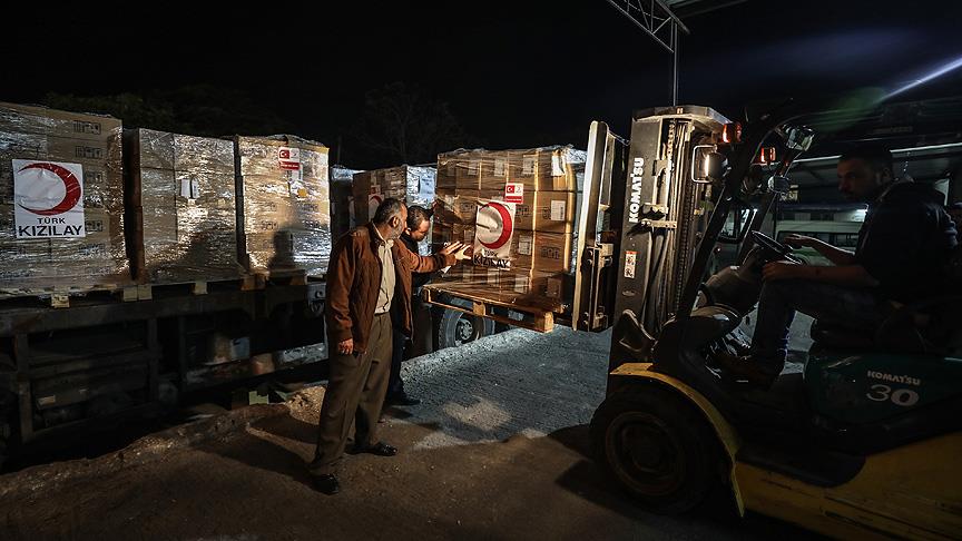 Kerem Ebu Salim kapısındaki kaynaklardan edinilen bilgiye göre, Türk Kızılayı tarafından yollanan ilaçları taşıyan tırlar, akşam saatlerinde Gazze'ye ulaştı.