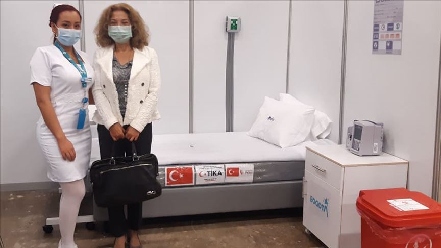 Kolombiya'nın başkenti Bogota'daki hastaneye çevrilen fuar alanında Kolombiya Devlet Başkanlığı İşbirliği Ajansının (APC) düzenlediği etkinliğe Türkiye'nin Bogota Büyükelçisi Ece Öztürk Çil, TİKA Bogota Program Koordinatörü Mehmed Sülkü ve Bogota Belediye Başkanı Claudia Lopez katıldı.