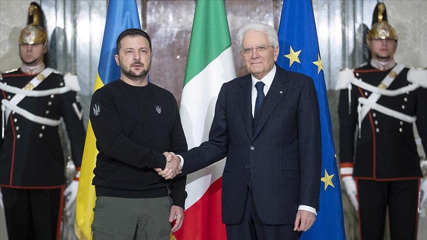Mattarella, Zelenskiy'i cumhurbaşkanlığı sarayı Quirinale'de resmi törenle karşıladıktan sonra baş başa görüşmeye geçildi.