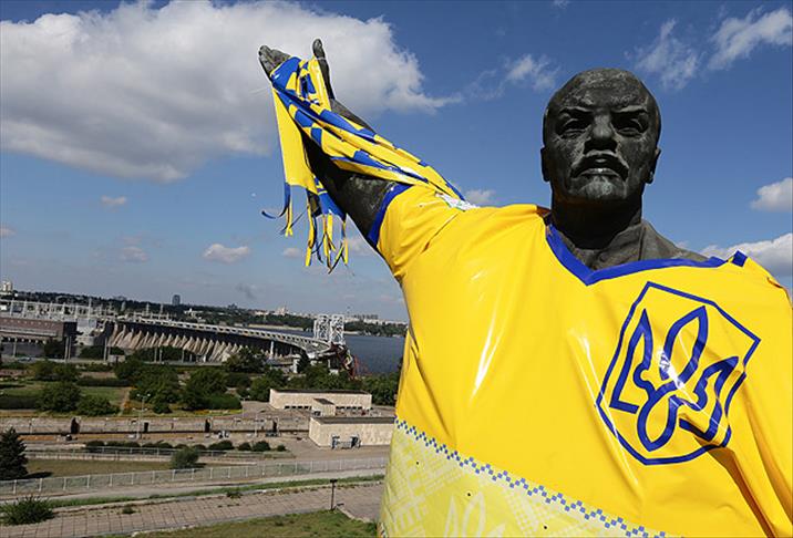 Ukraynalı taraftarlar, 2016 Avrupa Futbol Şampiyonası (EURO 2016) Elemeleri'nde C Grubu'nda konuk ettiği Belarus'u önceki günü 3-0 yenen Ukrayna'nın galibiyetini ülkenin Zaporozhye kentinde bulunan Lenin heykeline Ukrayna milli forması giydirerek kutladı.