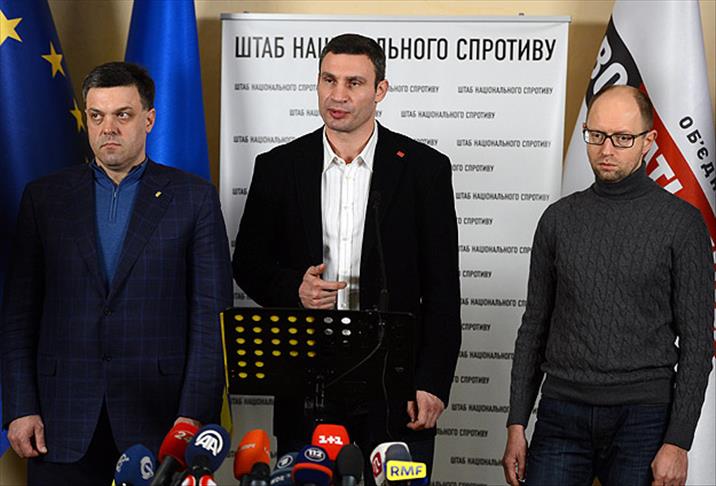 Ukrayna'da muhalefetteki Anavatan, Özgürlük ve Yumruk partileri, Profsayuz Evi'nde (Sivil Toplum Kuruluşları Birliği) ortak basın toplantısı düzenleyerek, bundan sonra izleyecekleri yol haritasını anlattı.