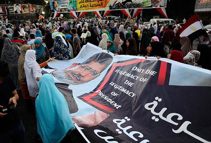 Nahda Meydanı'na doğru yürüyenlerin başını kadın eylemciler çekti. Göstericiler, ordunun yönetime el koymasıyla görevinden uzaklaştırılan ülkenin seçilmiş ilk cumhurbaşkanı Muhammed Mursi'nin görevine geri dönmesini talep etti.