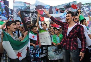 "Suriye'de biz Suriyeliler olarak hepimiz, tek bir adamın bütün bir ülkeyi her türlü çatışma ve savaşa sürüklediğini görüyoruz. Beşşar Esed bütün bunları, makamını bırakmamak için yaptı ki dünyada hiçbir makamın bir insanın canından daha önemli olmadığını unutmuştur. Uluslararası medya, Suriye'de 11 binden fazla tutuklunun işkenceye maruz kaldığını belgeledi. Bu fotoğraflar, ülkedeki gerçekleri görmenize yetiyor. Bu tür olaylar herhagi bir ülkede yapılıyor olsaydı o ülke halkımızın dayandığı acının çeyreğine dayanabilir miyidi? diye soruyorum. Nefsimize müdafaa seçeneğinde silah yoktu ama Beşşar Esed rejimi halka zorla silahı seçtirdi. Suriye'de barışı ve çözümü konuşmak için ve uluslarası toplumun Suriye'deki insanları dramına karşı sessiz kalmasından sonra buraya geliyoruz."
