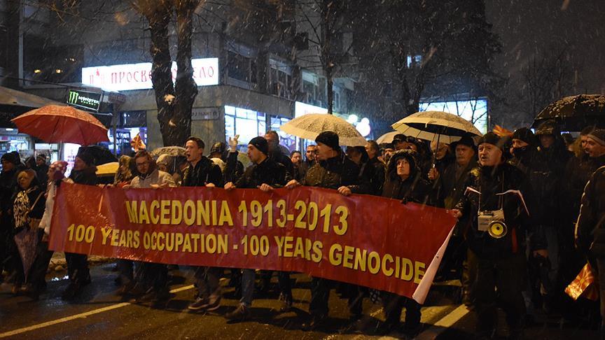 "Ülkenin ismi ile ulusun kimliğinin korunması" için birçok sivil toplum kuruluşları tarafından düzenlenen protestoya katılanlar, "Bir ismimiz var", "İsmimizi vermeyiz", "Yunanistan ırkçılığı durdur" yazılı pankartlar ile meclis binasına doğru yürüdü.