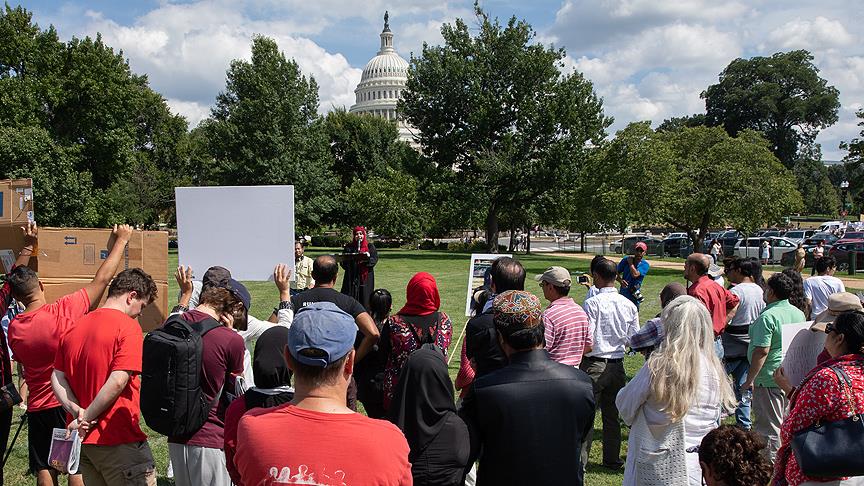 Myanmar ordusunun 1 yıl önceki Arakanlı Müslümanlara yönelik katliamları, ABD Kongresinin önünde toplanan Arakanlılar tarafından protesto edildi.
