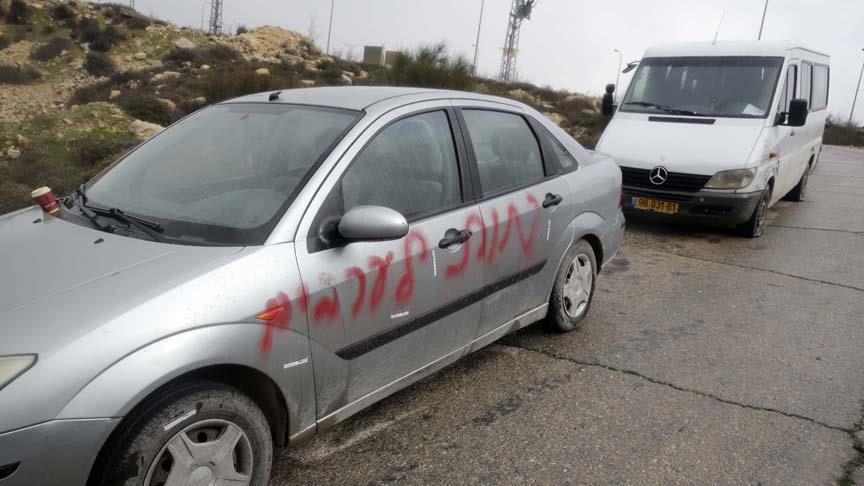 Yahudi yerleşimciler, işgal altındaki Batı Şeria'da Filistinlilere ait bazı araçlara ve evlerin duvarlarına ırkçı sloganlar yazdı.