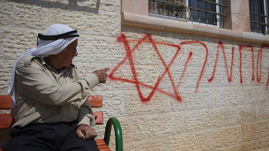Yahudi yerleşimciler, işgal altındaki Batı Şeria'da Filistinlilere ait 8 araca zarar verdi, bazı evlerin duvarlarına ırkçı sloganlar yazdı.