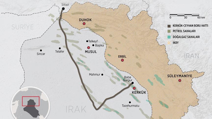 Kerkük petrolünü Ceyhan limanına taşıyacak boru hattı, Salahaddin vilayetinden başlayıp Kerkük ve Musul'dan geçip Duhok'un Fişhabur bölgesinden Türkiye'ye geçecek.
