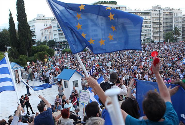 Yunanistan’ın Avrupa Birliği’nde ve avro para biriminde kalmasını isteyenler başkent Atina'da gösteri düzenledi.